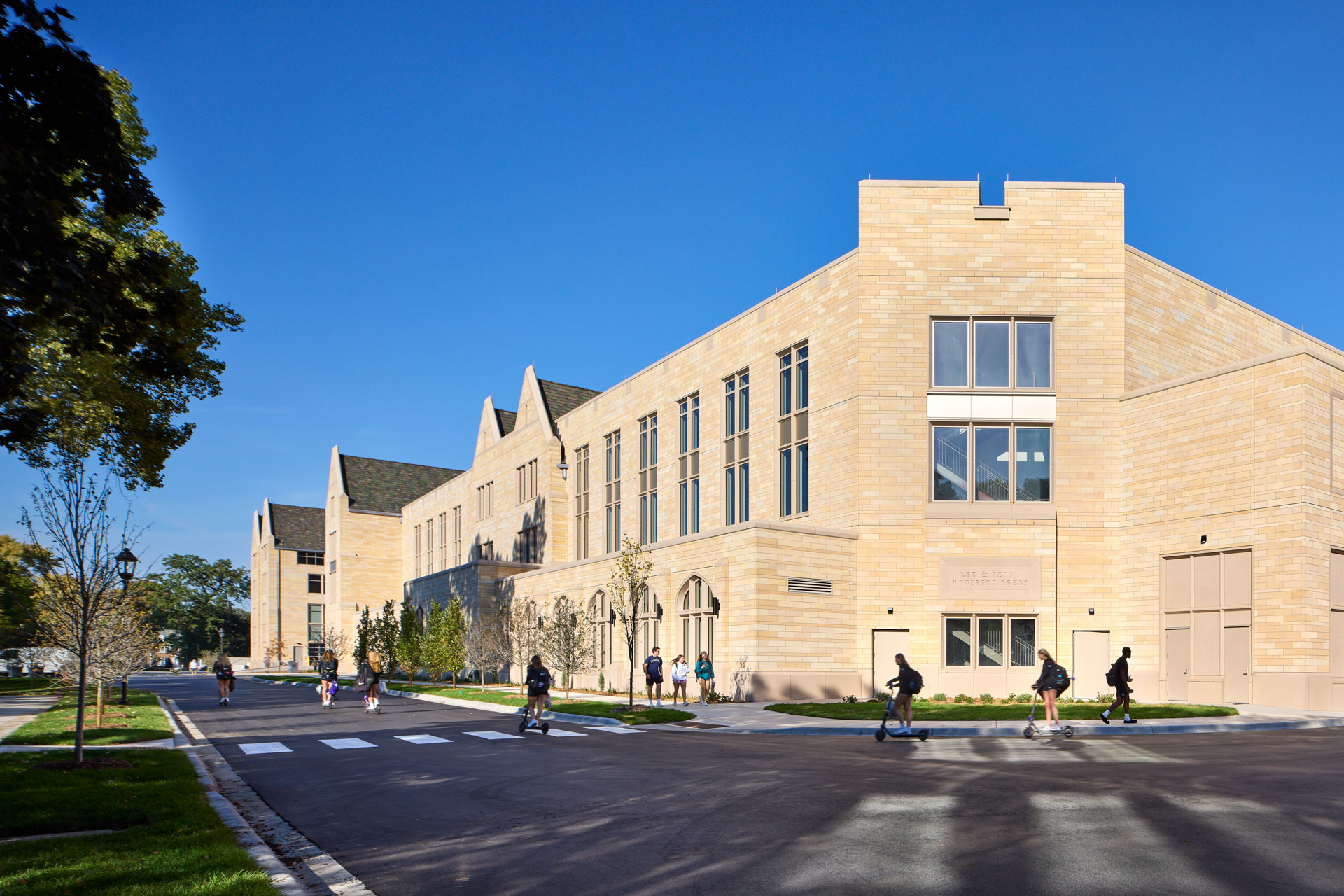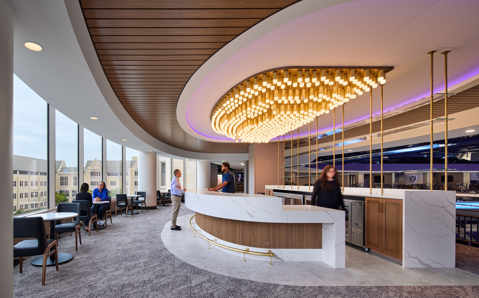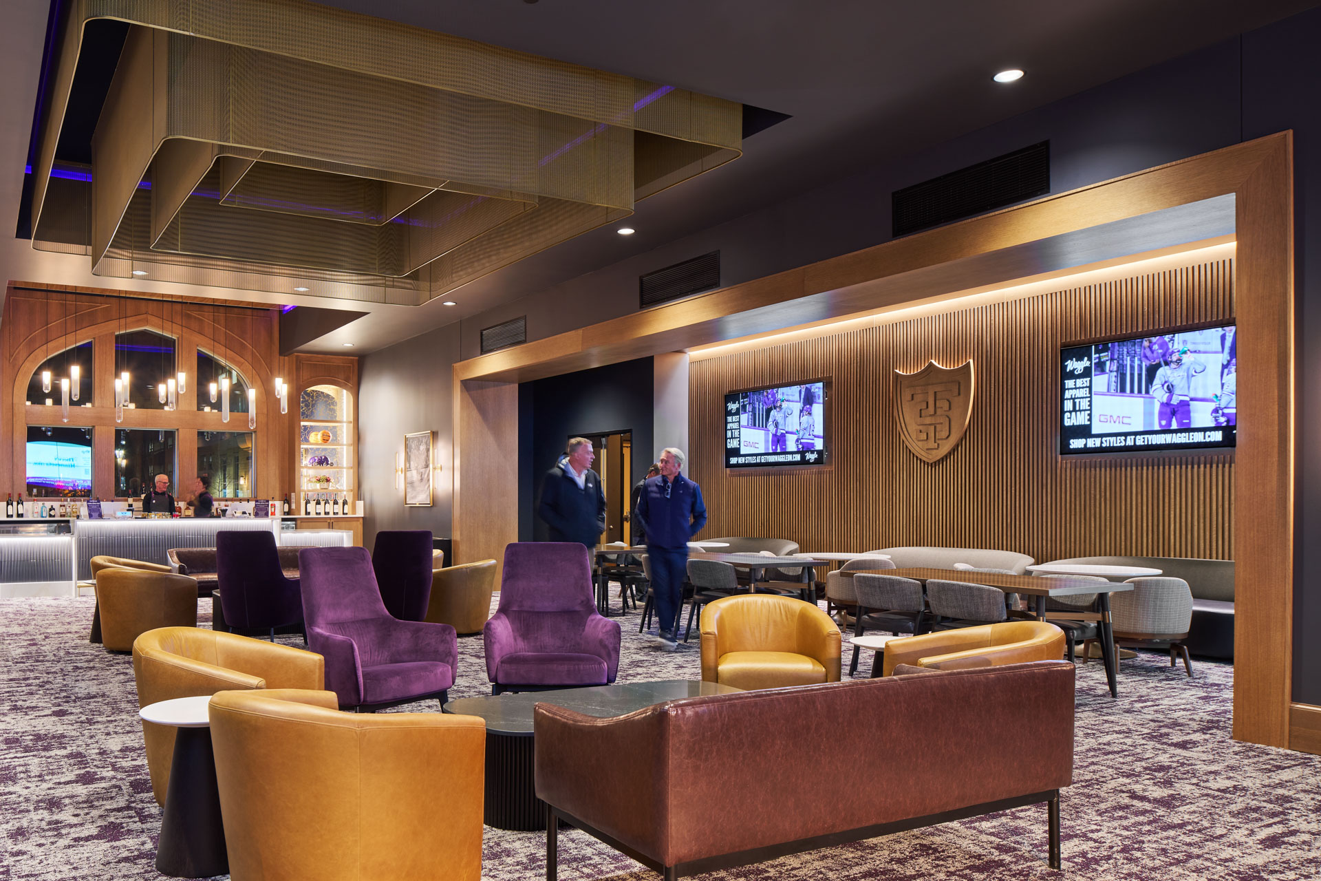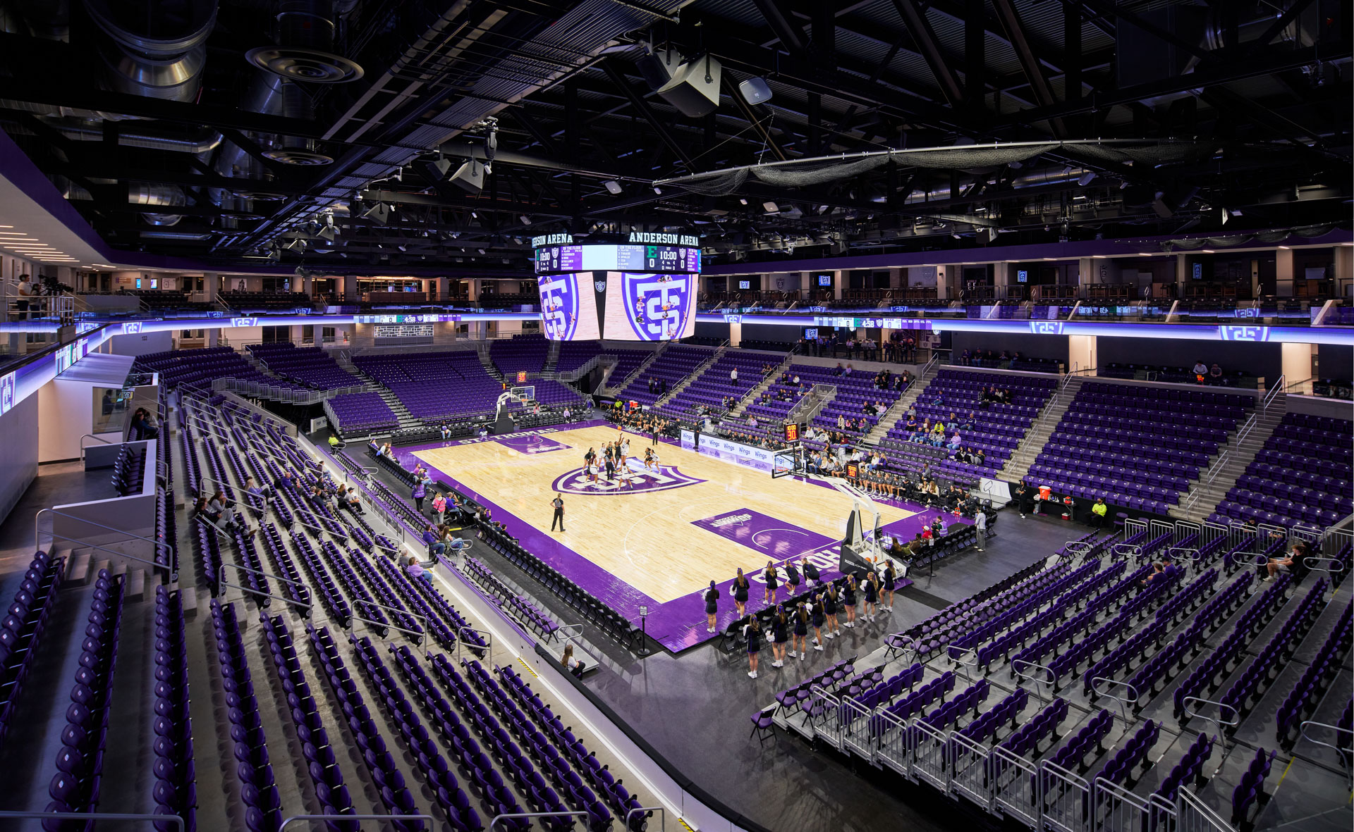 The arena includes 6,200 seats for men’s and women’s basketball, 5,000 for men’s and women’s hockey, and 6,500 for concerts. Fans enter at ground level into a grand lobby, which includes vertical circulation up to the concourse level. This lobby will also function as an event space, capable of hosting receptions and smaller gatherings. The seating bowl incorporates a mix of retractable, variable rise, and platform sections designed to optimize sight lines for both basketball and hockey. The objective was to give each sport the atmosphere of a dedicated, single-sport venue. The flexible seating layout also allows for quick changeovers to accommodate St. Thomas commencement ceremonies, academic convocations, guest speakers, career fairs, and other university and community events. At 250,000 square feet, the complex is more than just a state-of-the-art arena. Its east wing will serve as the hub for seven intercollegiate athletic programs. Tommie basketball, hockey, soccer, and softball will each have dedicated administrative offices and full team suites, along with facilities for training, rehabilitation, performance development, nutrition, academic support, and team meetings—all conveniently located near their home competition venues.