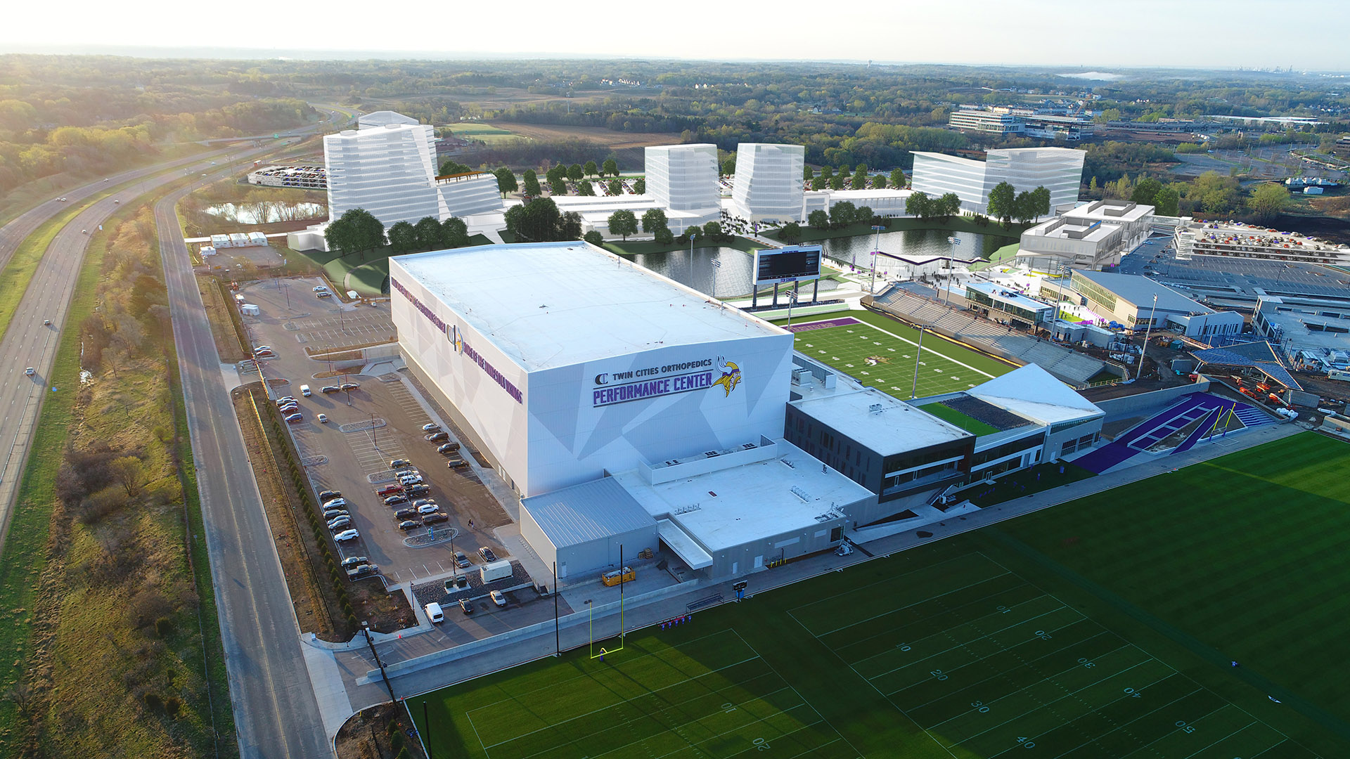 The campus’s entertainment and community engagement is anchored by TCO Stadium, a multi-use outdoor venue featuring artificial turf and a capacity of 7,500. Beyond serving as a premier community asset, the stadium is an immense economic driver. As the home of the Minnesota Vikings’ annual training camp, the venue draws tens of thousands of fans, generating millions in local economic activity (including an estimated $5.7 million in hospitality and retail revenue during the 2019 training camp alone), proving that thoughtful, sports-anchored developments can sustain massive, multifaceted revenue streams long after game day.